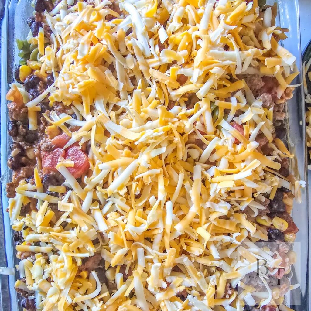 Finally, sprinkle the remaining cheese over the top and bake until the casserole is hot, bubbly, and golden. Once out of the oven, let it rest for a few minutes before serving—this way, each cheesy bite holds together perfectly!!!!!!!!